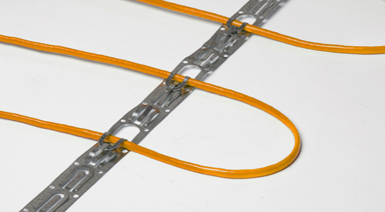 3. Следующим этапом идет укладка нагревательной секции. Перед началом монтажа необходимо выровнять поверхность пола и очистить от мусора. Прикрепите к поверхности пола металлическую монтажную ленту. Разложите и закрепите на нее нагревательный кабель, рассчитав заранее шаг укладки.