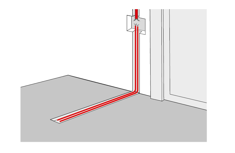 2. Далее устанавливается терморегулятор: для этого необходимо заранее сделать углубление для электропроводки и датчика температуры.