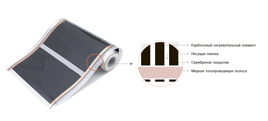 Пленочный инфракрасный пол ULTRA — это высокотехнологичное изделие, произведенное на основе углеродной термической пленки. В основе нагревательного элемента используется очень тонкая пленка с нанесенными на ней полосами из специальной карбоновой пасты.