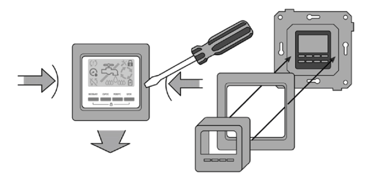 Установите контроллер в стенную коробку и наденьте декоративную рамку и корпус контроллера.