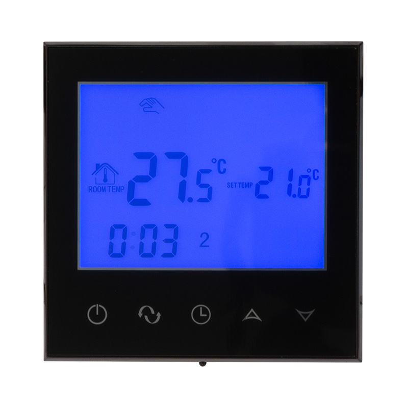 Терморегулятор оснащен ЖК дисплеем. Есть возможность задавать до 6 временных периодов на каждый день недели, а также выбрать ручной режим управления. С помощью специальных функций двойного контроля и двойной температуры прибор получает данные не только о температуре в помещении, но и о температуре оборудования. Когда температура в системе выше, чем установленная, терморегулятор автоматически остановит нагрев. Такой режим обеспечивает разумное потребление ресурсов и продлевает срок службы системы отопления.