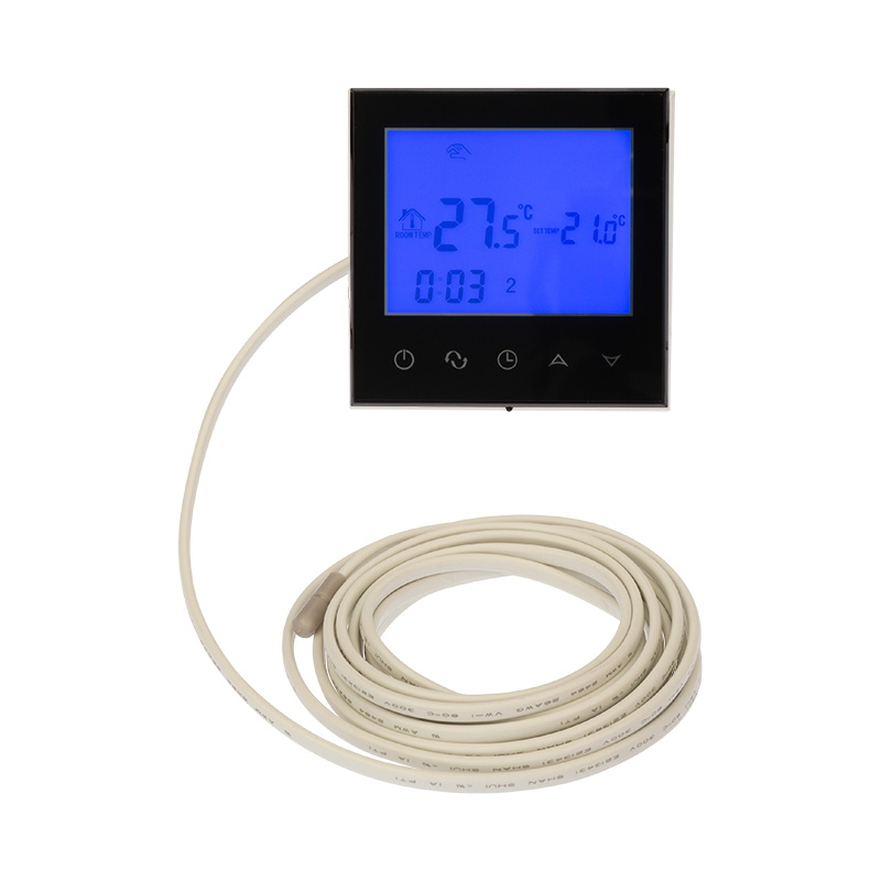 Терморегулятор оснащен ЖК дисплеем. Есть возможность задавать до 6 временных периодов на каждый день недели, а также выбрать ручной режим управления. С помощью специальных функций двойного контроля и двойной температуры прибор получает данные не только о температуре в помещении, но и о температуре оборудования. Когда температура в системе выше, чем установленная, терморегулятор автоматически остановит нагрев. Такой режим обеспечивает разумное потребление ресурсов и продлевает срок службы системы отопления.
